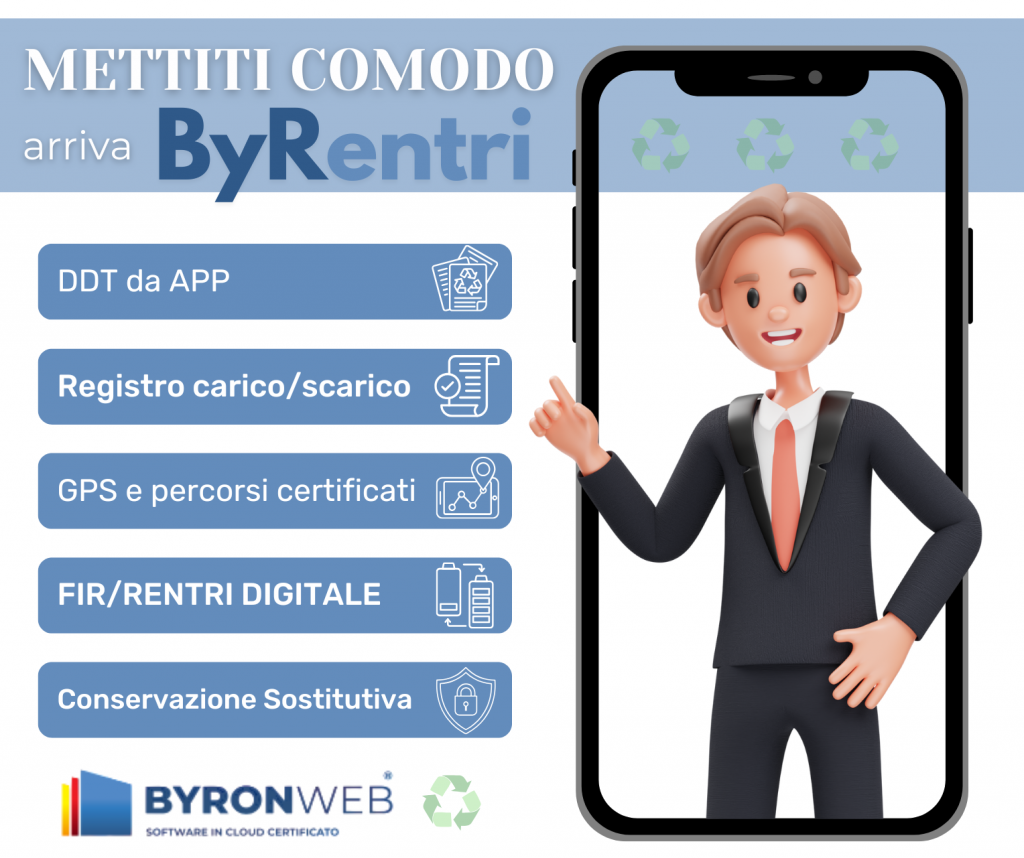 Abbiamo ottenuto lโaccreditamento ministeriale per integrare in ByronWeb il modulo BYRENTRI dedicato alla gestione digitale dei rifiuti con conservazione sostitutiva a norma.
